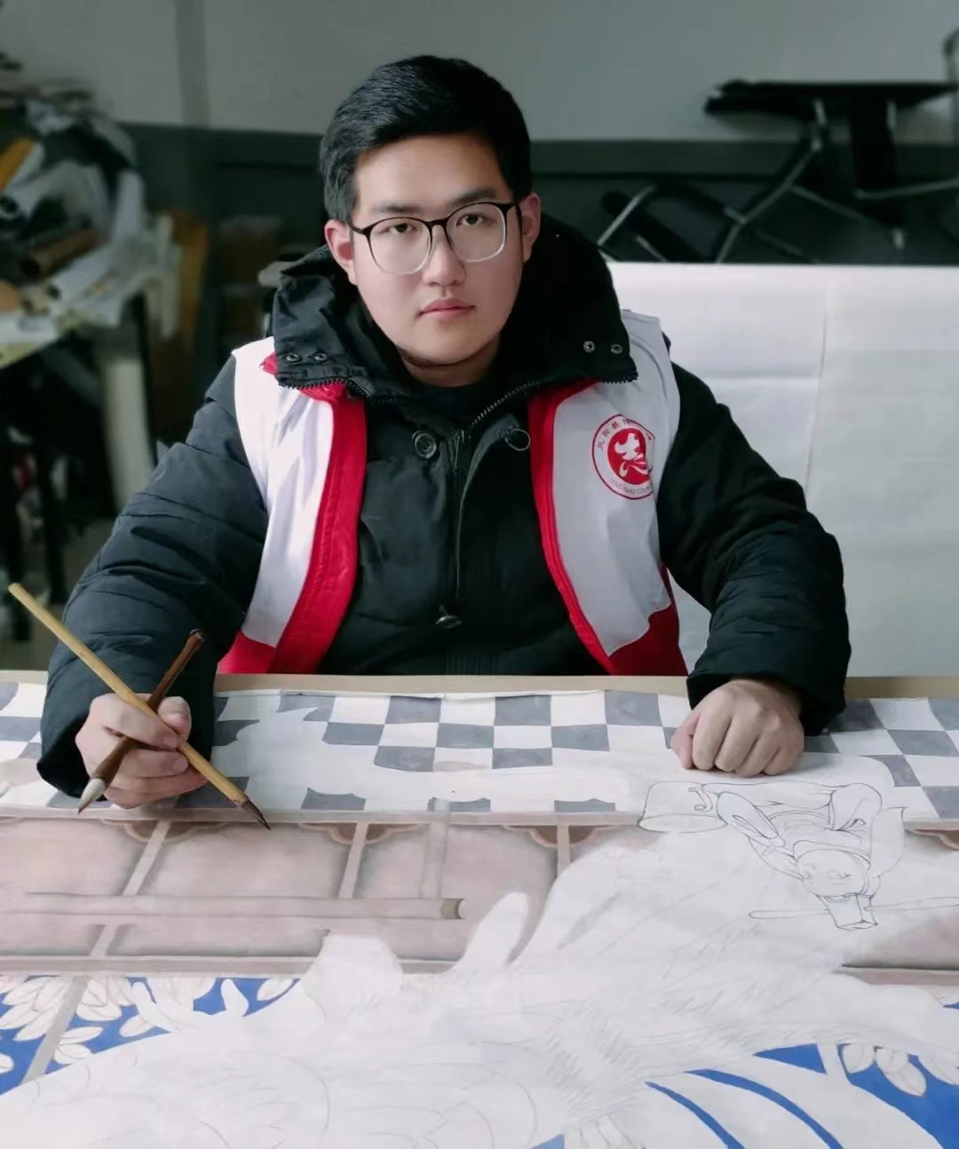 沙龙上,来自艺术学院的孟泽远同学分享了自己的非遗传承之路,以安徽凤阳凤画为例,结合当地区域发展,通过金山农民画加凤画,以黑陶为载体,赋予新动能新样态。